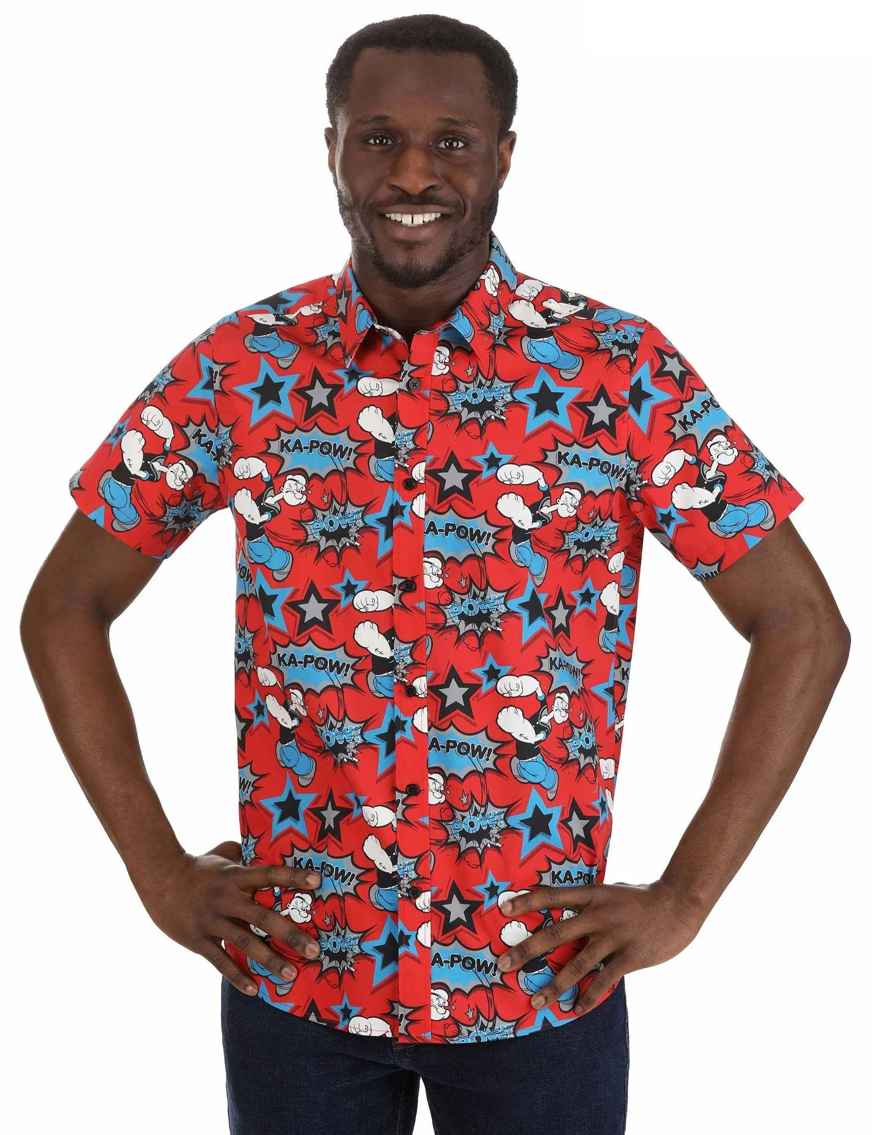 Officially licensed button up shirt with an all-over print pattern.