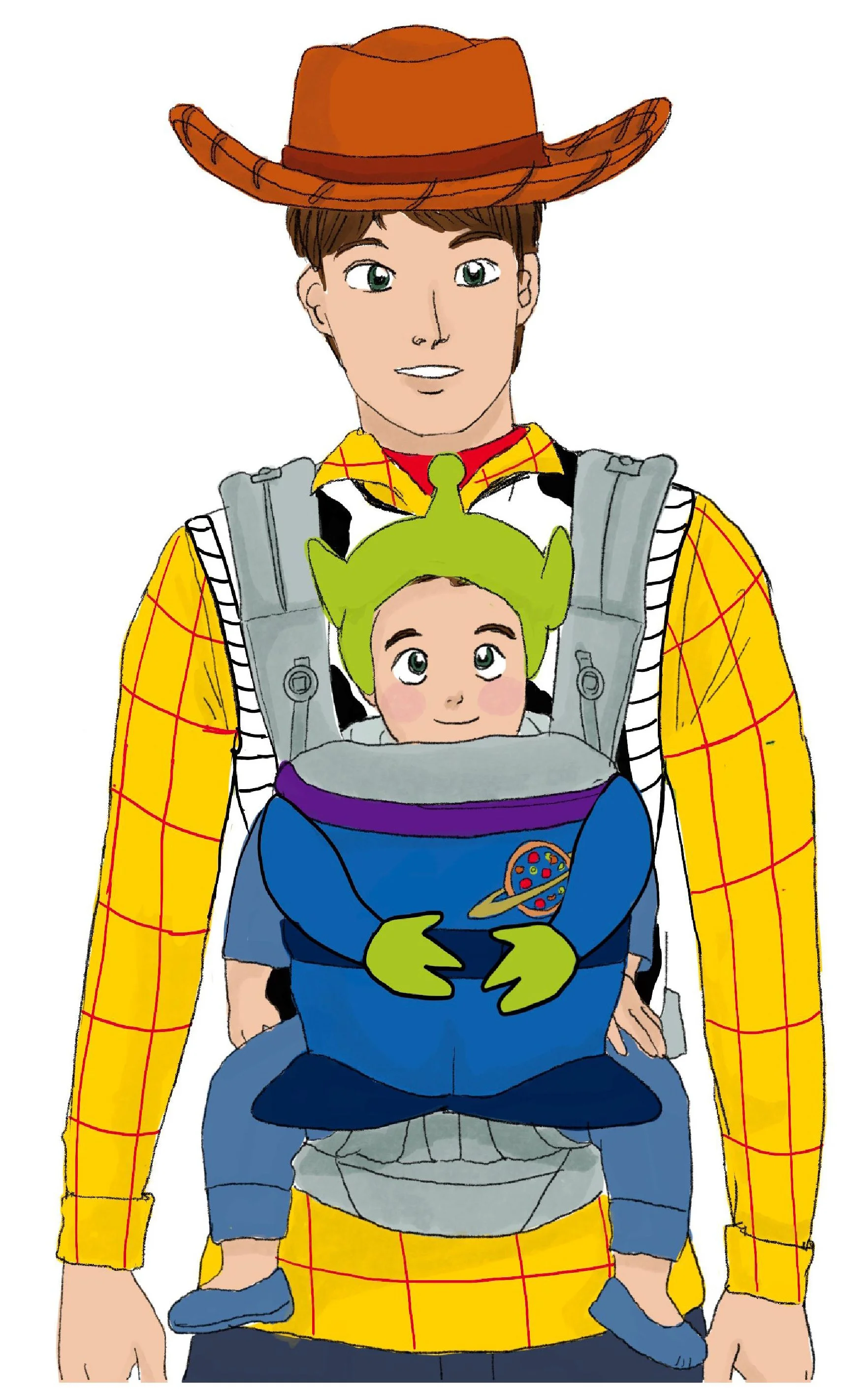 This line of officially licensed baby carrier costume covers creates an easy solution for Halloween and other costuming events for parents with small babies and toddlers. The cover fits over standard baby carriers and the plush headwear attaches securely but comfortably under a child's chin. Each plush costume is made based on similar concept art like this.