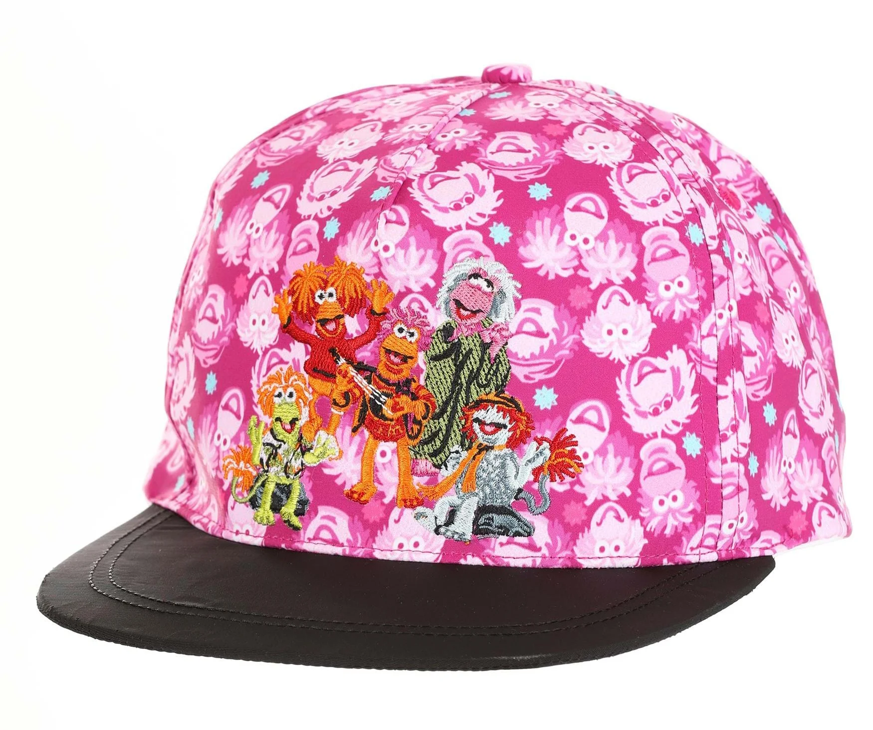 Officially licensed snapback. The embroidered art contrasts against the printed pattern and is grounded by the black brim.